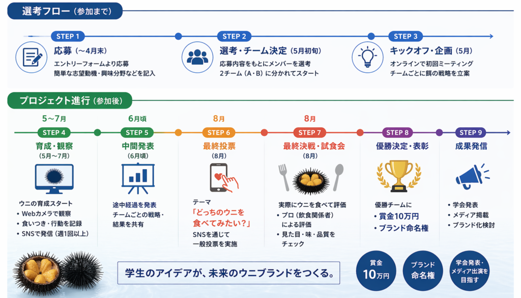 本プロジェクトでは、学生によるウニ育成バトルを通じて