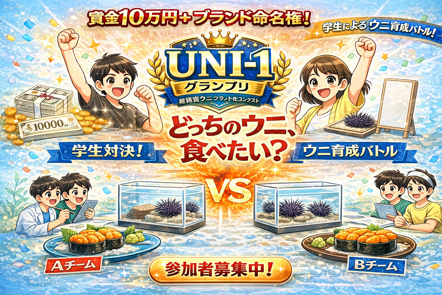学生対決!ウニ育成バトル どっちのウニ、食べたい?