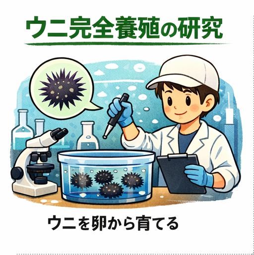 ウニを卵から育てる完全陸上養殖の研究に参加します。